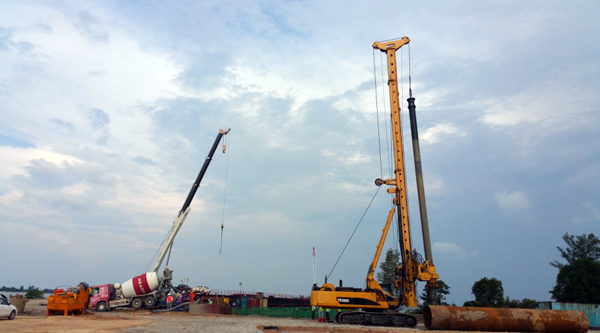 文萊PMB跨海大橋首根試樁鉆孔直徑1.5m,鉆孔深度68.6m,灌注混凝土120方。試樁內裝有“荷載箱”兩組,鋼筋應力計52組。通過技術攻關,首根試樁的鉆孔垂直度、泥漿參數、沉渣厚度等指標均滿足歐標要求,順利通過總包、監理驗收。尤其是混凝土灌注施工,有了鉆孔質量的保證,混凝土灌注導管自由的在布設有兩組關卡的“荷載箱”內安放、提拔,獲得了總包方和監理方稱贊,監理工程師向我們豎起了大拇指。我們以一流的管理、先進的設備、精湛的技術,進一步擦亮了“河北建勘”品牌。