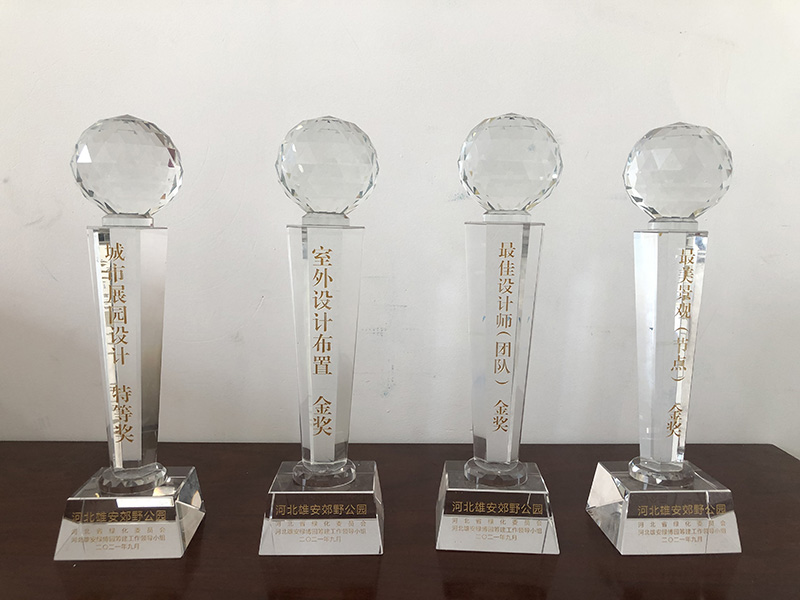 為全面總結推廣雄安郊野公園建設成果,加強交流與合作,樹立典型,促進公眾愛綠植綠等生態保護意識,推動全省生態文明建設,近日,由河北省綠化委員會、河北雄安綠博園籌建工作領導小組組織的河北雄安郊野公園建設工作評獎工作,經各市申報,現場評審,我設計監理公司完成的“雄安郊野公園辛集展園設計項目”分別榮獲了“河北雄安郊野公園城市展園設計特等獎”、“河北雄安郊野公園最佳設計師(團隊)金獎”、“河北雄安郊野公園最美景觀節點金獎”、“河北雄安郊野公園室外設計布置金獎”四個獎項。