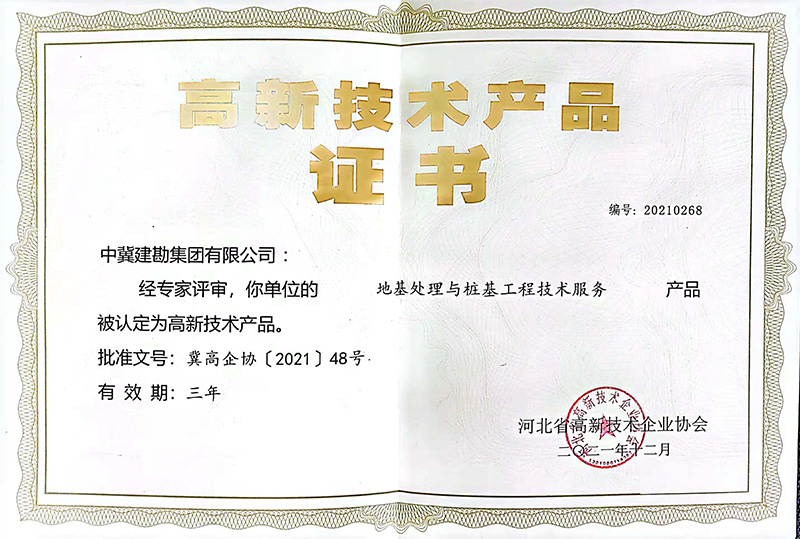 近日,河北省高新技術(shù)企業(yè)協(xié)會按照《河北省高新技術(shù)產(chǎn)品認定實施細則》要求,經(jīng)組織專家評價、評審、認定,我公司兩項技術(shù)“地基處理與樁基工程技術(shù)服務”和“巖土工程勘察設計技術(shù)服務”兩項技術(shù)服務榮獲“高新技術(shù)產(chǎn)品”稱號。本次榮獲“高新技術(shù)產(chǎn)品”稱號,標志著擁有自主知識產(chǎn)權(quán)及核心技術(shù)的兩項服務產(chǎn)品得到了行業(yè)協(xié)會的認可,進一步提升了公司技術(shù)服務的品牌競效應以及品牌的競爭力、影響力。同時“高新技術(shù)產(chǎn)品”是高新技術(shù)企業(yè)認定的重要依據(jù)和加分項,為公司2022年高新技術(shù)企業(yè)的期滿重新認定打下了良好基礎。