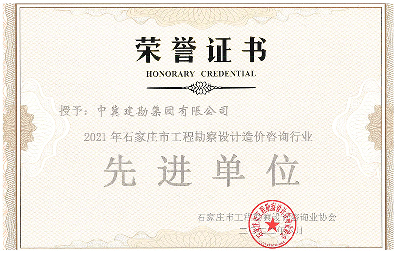 近日,石家莊市工程勘察設計咨詢業協會下發文件《關于表彰2021年石家莊市工程勘察設計造價咨詢行業先進單位和先進個人的通知》(石設協字【2022】6號),我公司被授予“2021年石家莊市工程勘察設計造價咨詢行業先進單位”稱號,韓立君同志、商衛東同志被授予“2021年石家莊市工程勘察設計造價咨詢行業先進個人”稱號。此榮譽的獲得說明了公司在貫徹高質量發展戰略方面取得了良好業績,為推動我市勘察設計行業高質量發展做出了積極貢獻,得到了行業的肯定和認可。