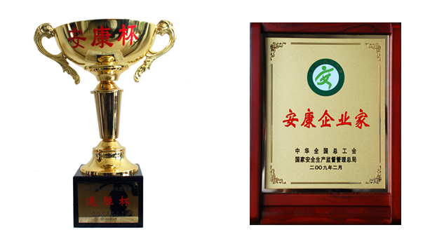 公司在2009年度全國“安康杯”競賽活動中榮獲優勝企業稱號,這是我公司連續六年榮獲全國安康杯競賽優勝企業,并被中華全國總工會、國家安全生產監督管理總局授予全國安康杯競賽優勝企業“連勝杯”。