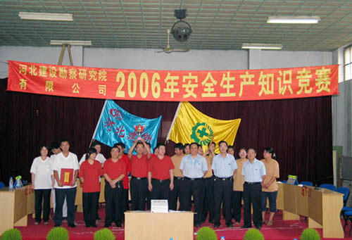 為了更好的維護職工的合法權益,不斷增強各級領導和職工的安全生產意識,提高安全生產的知識水平,公司工會、設備安全部、公司團委聯合舉辦了“2006年安全生產知識競賽”。這項活動得到了公司領導的大力支持,得到了各單位員工的積極響應,共組織了11支代表隊參加了比賽。通過三場緊張有序的預賽,共選拔出五支代表隊參加了8月17日進行的決賽。在各自啦啦隊熱烈的加油鼓勁和吶喊助威下,參加決賽的五支代表隊展開了激烈的角逐,經過緊張的三輪必答和搶答比賽,公司機關代表隊脫穎而出,贏得冠軍。巖土工程公司、地下工程公司代表隊惜列二、三名,基礎工程公司、水資源環境公司代表隊并列第四名。